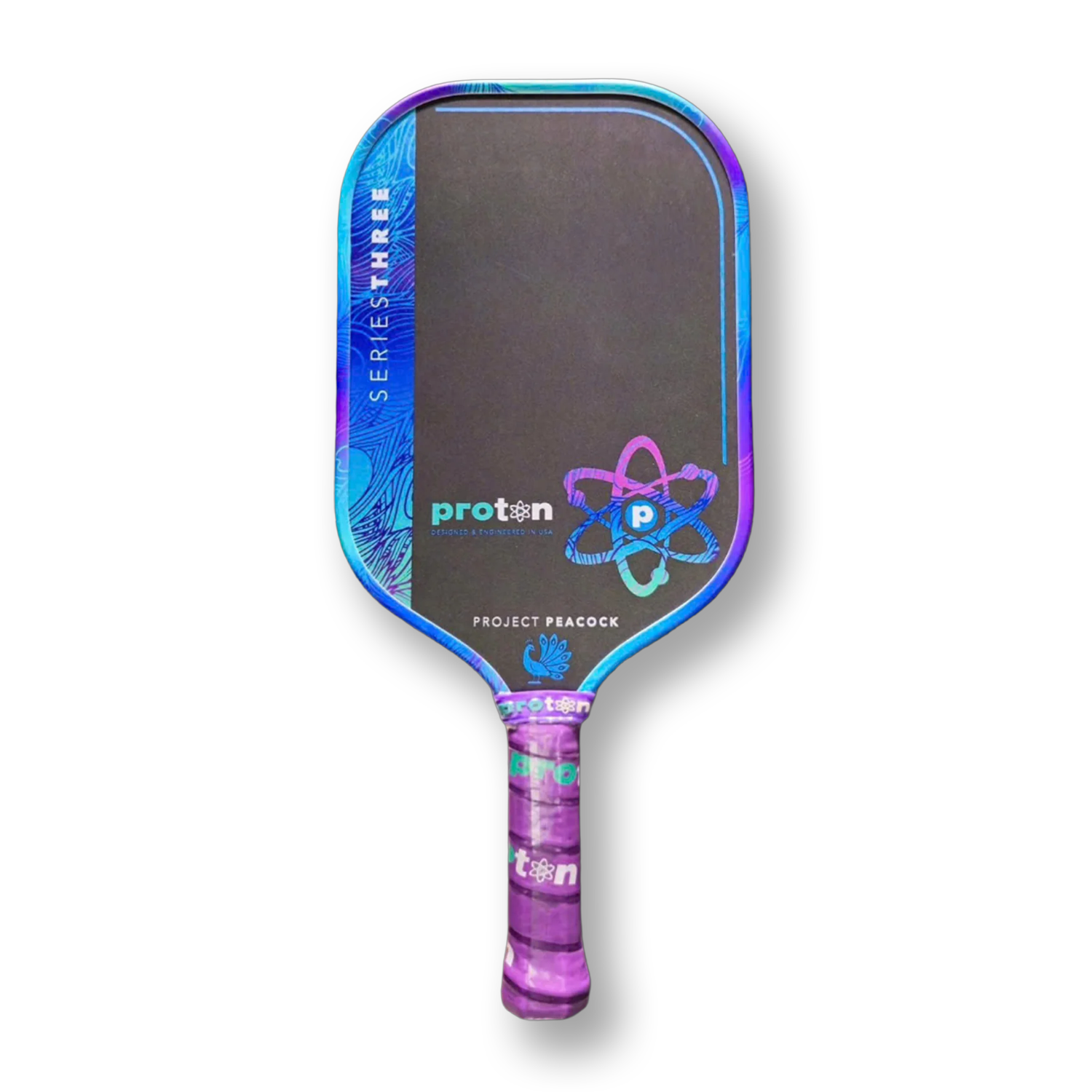 Are you ready to add some flair to your game? Introducing our latest innovation in the Series Three family, the Project Peacock. This paddle features our high-density Atomic foam core, giving you a lightweight, durable construction engineered for optimal responsiveness. Get ready to experience more feel with longer dwell time, all without sacrificing power. With this reliable construction, you can play confidently knowing that issues like delamination are a thing of the past. The Peacock is sure to make your game "stand out" from the rest.