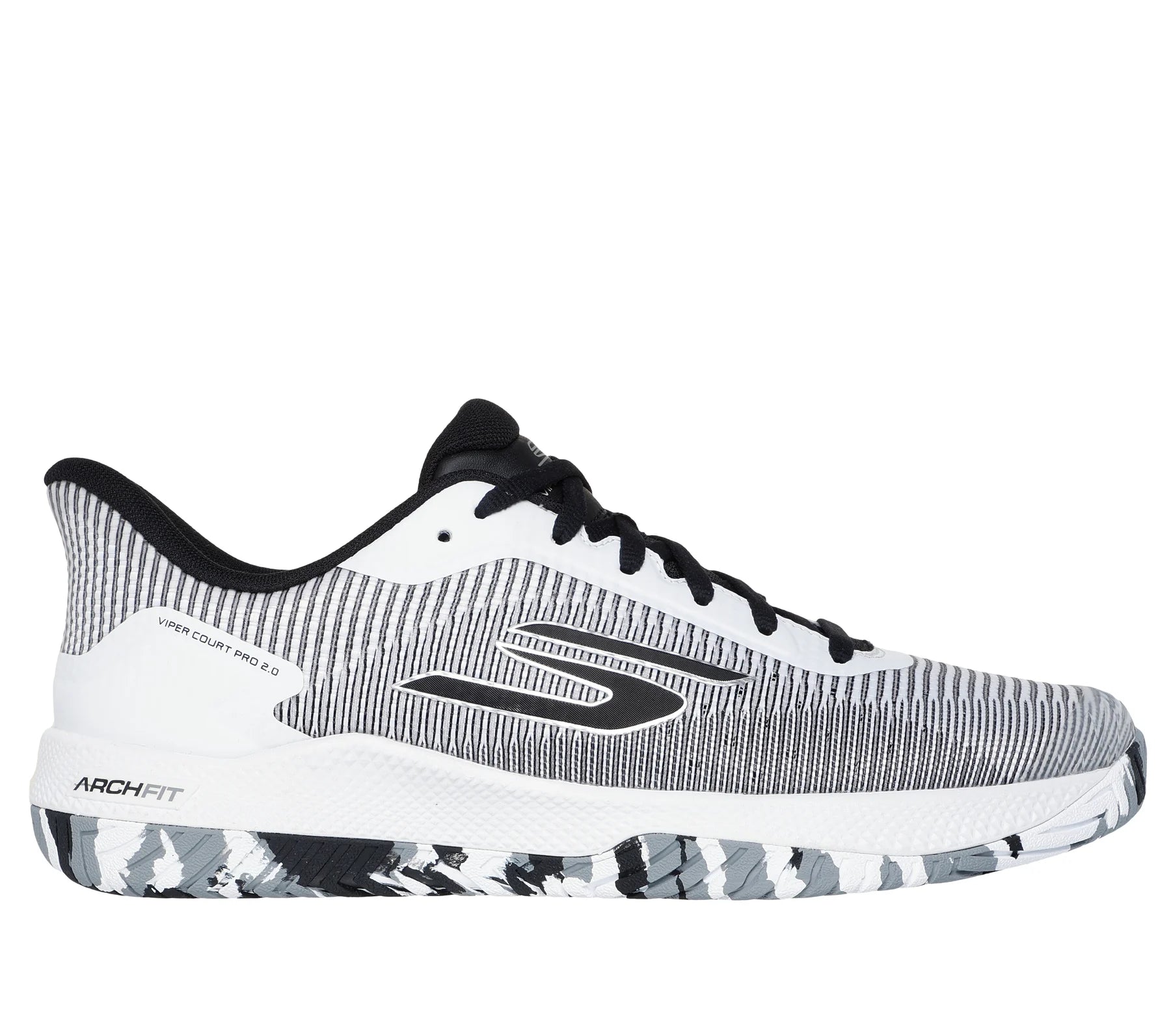 Play your best game in confidence and comfort with Skechers Viper Court Pro - Pickleball. Designed specifically for the elite Pickleball athlete, this lace-up features a supportive and breathable mesh upper with synthetic overlays for additional protection, a removable Arch Fit® insole, and lightweight ULTRA FLIGHT cushioning. The design is complete with a Goodyear® Gold compound outsole that's built for increased durability to allow the elite player to perform controlled slides specifically on the pickleball court surface.
